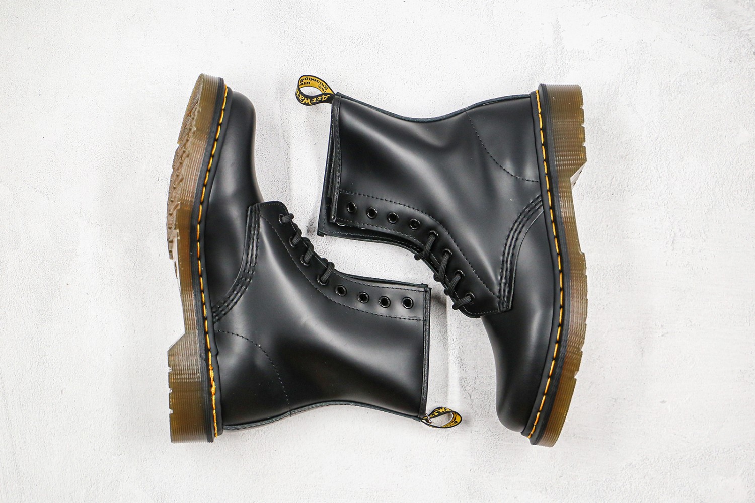 - Detailed with two arrow-shaped ski hooks and an external heel counter, the boots have flat cotton laces, gunmetal eyelets and unmistakable welt stitching and heel loop.