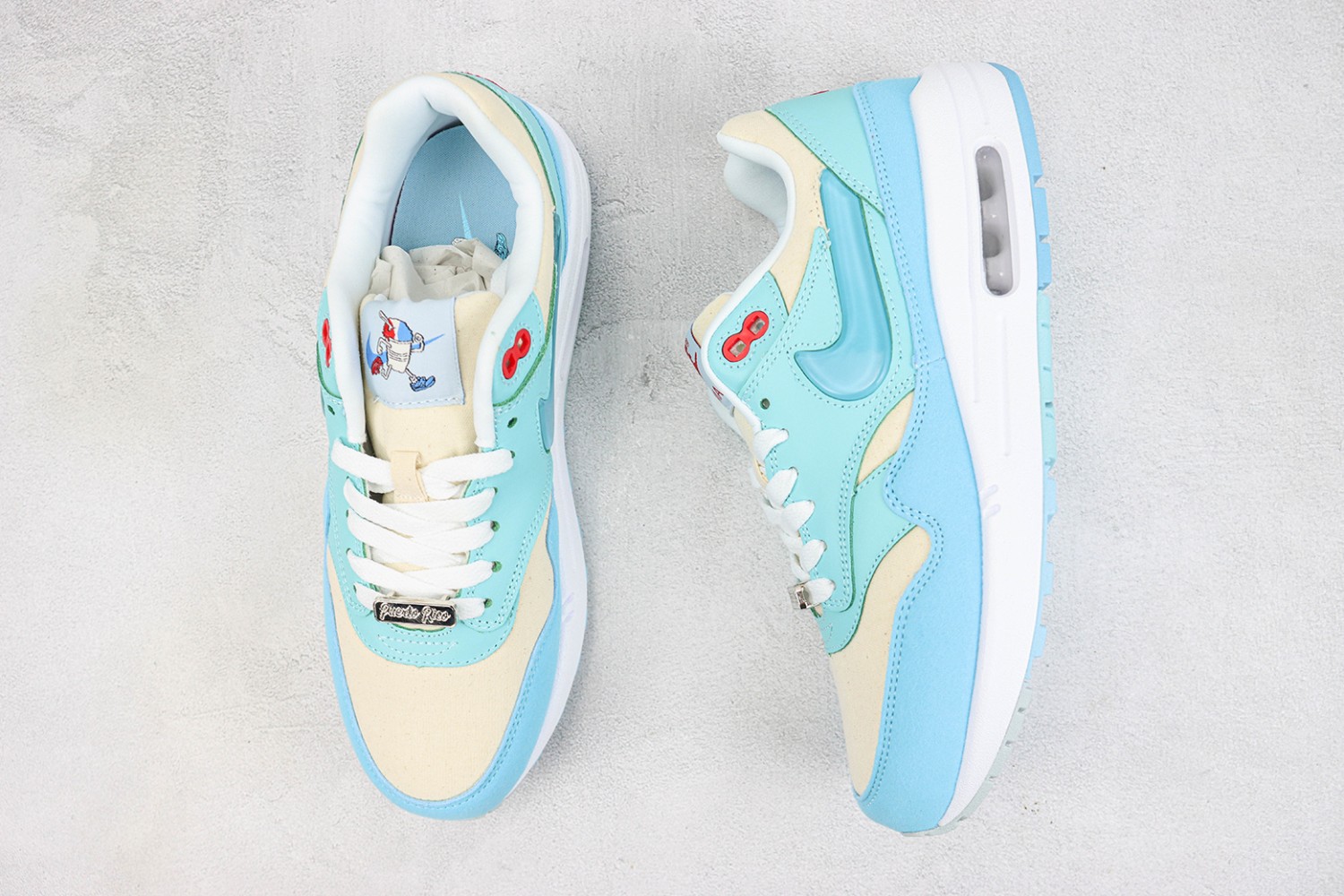 - Visible Max Air, The window design allows you a grand view of the optimal cushioning with every step. The design details are inspired by the ageless look of the Air Max 1 that was released in 1986, included the debossed “Nike Air” logo on the heel.